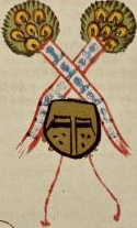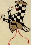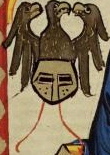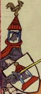 This table contains crests that reference the devices on the shields or escutcheons with which they are paired, but do not reproduce them exactly. They are loosely grouped from those that share the most with their devices to those that share the least. In general terms, this table contains: