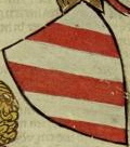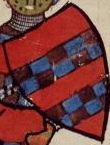 At least a partial blazon appears below each device. They are there to make it easier for anyone looking for a specific charge or field division to find it. Many of them are very rough, and some include standard-English descriptions of elements I was unsure how to blazon (enclosed in brackets) or are simply missing parts.